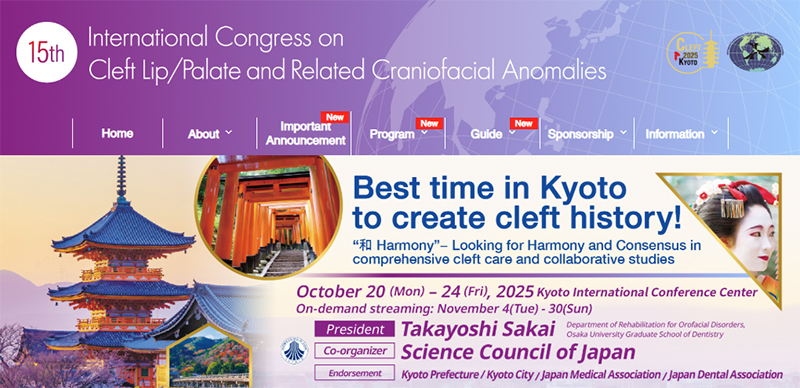 来週は21日(火)を休診させて頂いて、京都で開催される国際口蓋裂学会CLEFT2025に参加してきます。